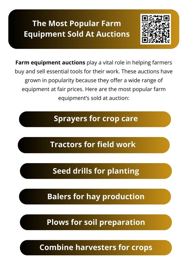 <!--td {border: 1px solid #cccccc;}br {mso-data-placement:same-cell;}-->At farm equipment auctions, the most sought-after items are those that support daily operations and boost productivity. These sales attract strong interest from buyers looking for reliable and cost-effective solutions. Auctions provide a positive, competitive environment where valuable tools change hands efficiently, helping the farming community stay updated and successful.