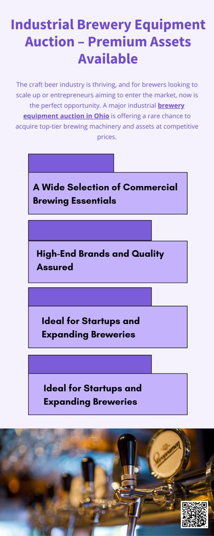 The industrial brewery equipment auction in Ohio offers a unique chance to obtain premium assets at unbeatable value. Whether upgrading your existing facility or building one from the ground up, these high-quality tools can help you brew better, scale faster, and compete stronger in today’s competitive craft beer landscape. Don’t miss this opportunity to invest in your brewing future.