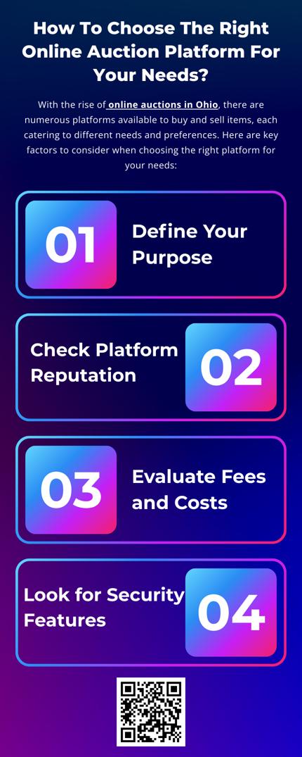 Choosing the right online auction in Ohio platform depends on your specific needs, whether you're a buyer or seller. Take time to research your options, compare fees, consider security features, and assess the platform’s reputation and ease of use. By choosing a platform that aligns with your goals and offers the necessary tools, you can maximize your chances of success and enjoy a seamless auction experience.