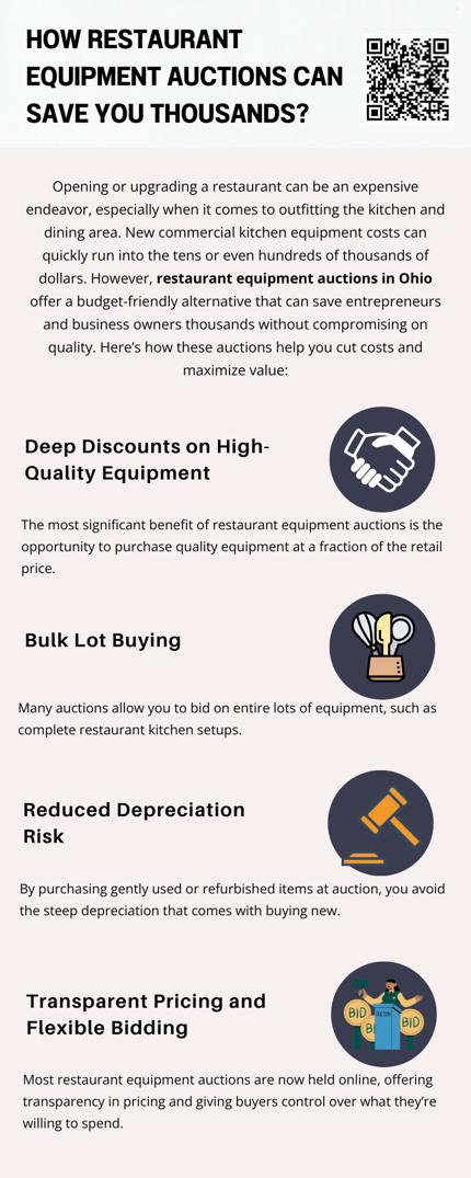 Restaurant equipment auctions in Ohio offer a smart, strategic way to control startup or expansion costs. With careful bidding, research, and a bit of patience, you can acquire high-quality, commercial-grade equipment for a fraction of the price—saving you thousands while setting your business up for success. Whether you're a first-time owner or a seasoned restaurateur, auctions should be part of your sourcing strategy.