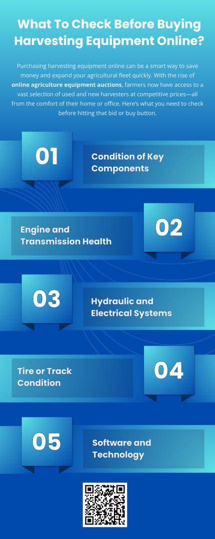 Buying harvesting equipment online can be a game-changer for your farm, especially through trusted online agriculture equipment auctions. But to make a smart investment, do your due diligence. Evaluate all key systems, research the model, and verify seller credibility. With the right checks, you can secure a reliable machine that boosts productivity while staying within budget.