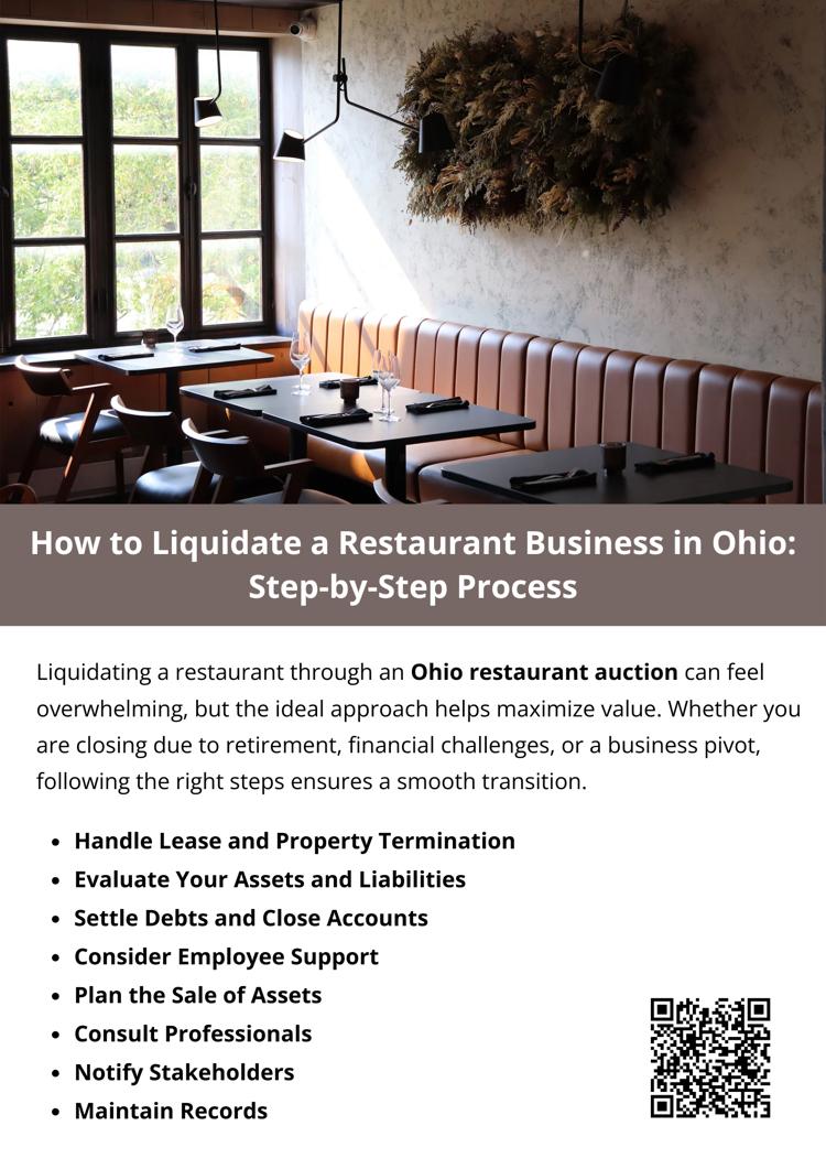Liquidating a restaurant involves assessing assets, settling debts, and selling equipment through an Ohio restaurant auction. This step-by-step process includes valuing inventory, choosing the right auction platform, marketing to buyers, and ensuring legal compliance. Proper planning can maximize returns while closing the business efficiently and meeting all state regulations.