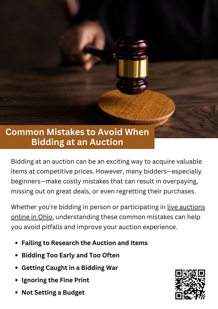 Bidding at auctions can be a great way to find valuable items at competitive prices, but it’s important to approach the process strategically. By researching items, setting a budget, avoiding emotional bidding, and reading the auction terms carefully, you can maximize your chances of success—whether you are bidding in person or participating in live auctions online in Ohio.