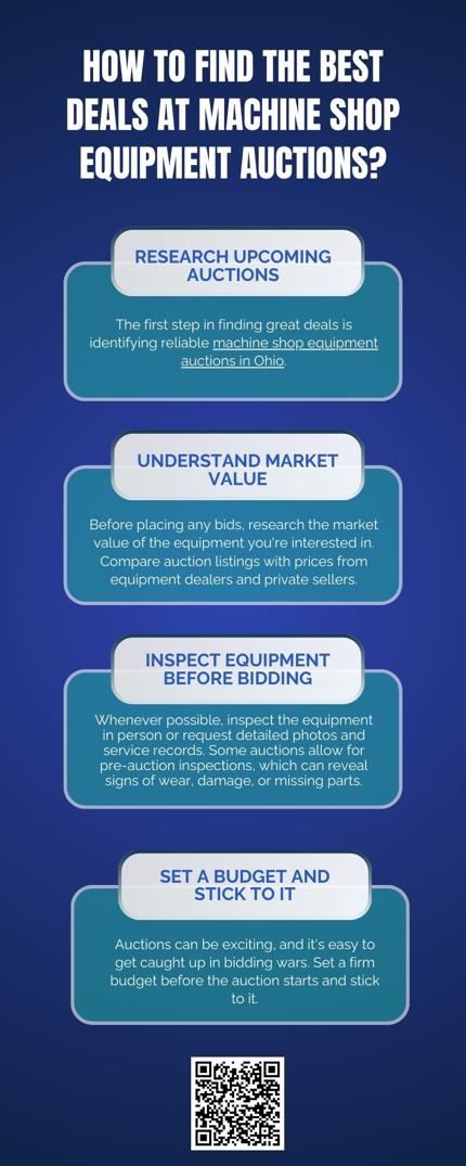 To secure the best deals at machine shop equipment auctions in Ohio, research upcoming auctions, inspect equipment before bidding, and set a firm budget. Look for lesser-known auctions to reduce competition and use smart bidding strategies. Factor in shipping costs and market value to avoid overpaying while maximizing savings on high-quality machine shop equipment.