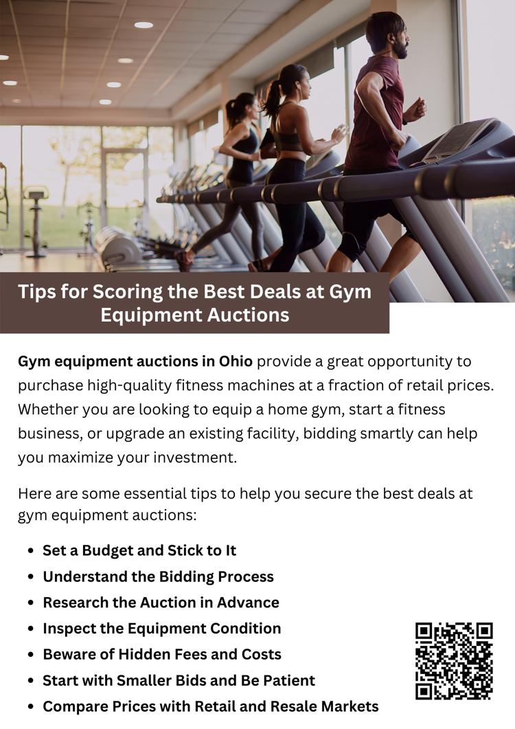 To secure the best deals at a gym equipment auction in Ohio, research the auction, inspect equipment for quality, and set a firm budget. Compare prices with retail values, understand bidding strategies, and watch for hidden fees. Start with smaller bids and avoid emotional bidding wars. With patience and smart planning, you can find high-quality gym equipment at competitive prices while maximizing your investment.