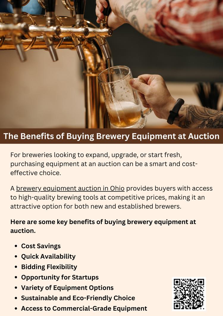 A brewery equipment auction in Ohio offers an excellent opportunity for breweries to acquire high-quality equipment at a reduced cost. Whether upgrading, expanding, or starting a new venture, auctions provide access to commercial-grade brewing tools with quick availability and sustainable benefits. By exploring auction opportunities, breweries can find the right equipment to support their production goals efficiently and affordably.