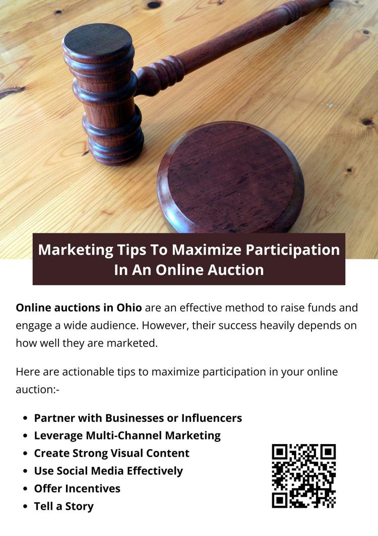 <!--td {border: 1px solid #cccccc;}br {mso-data-placement:same-cell;}-->To increase participation in an online auction in Ohio, it's important to create targeted promotions and offer attractive visuals of the items. Engaging content, such as social media posts or email campaigns, can also help. Building trust through clear communication and offering incentives like early-bird discounts can encourage more bidders to join and bid actively.