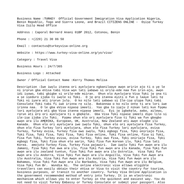 TURKEY WEBSITE For Benin Republic
