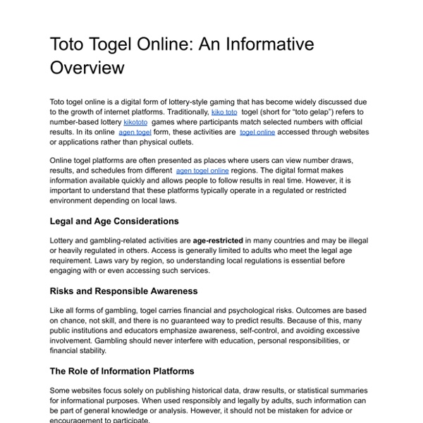 Toto togel online is a digital form of lottery-style gaming that has become widely discussed due to the growth of internet platforms.pdf
