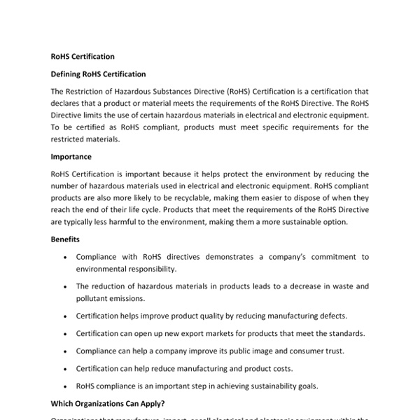 RoHS Certification