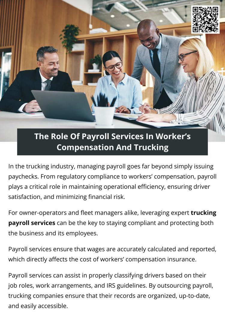 Trucking payroll services play a vital role in supporting workers’ compensation compliance and financial stability within the trucking industry. By ensuring accurate wage reporting, proper worker classification, and detailed recordkeeping, these services help trucking businesses stay protected, efficient, and legally compliant.