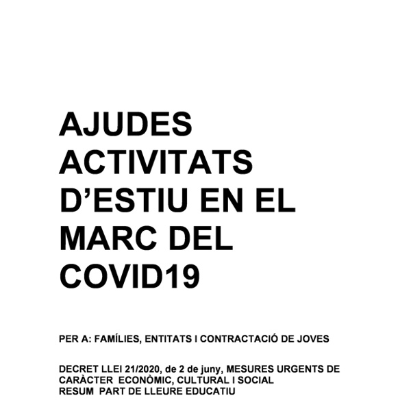 RESUM MESURES ECONoMIQUES DECRET LLEI 21 2020