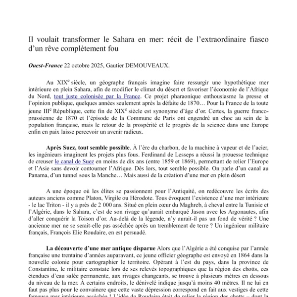 HISTOIRE PREMIERE Troisieme Republique Colonisation Tunisie Projet mer interieure dans golfe de Gabes 22 octobre 2025