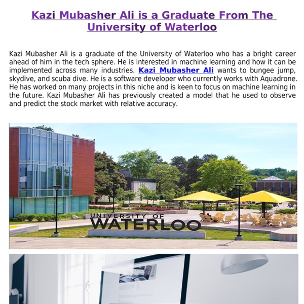 Kazi Mubasher Ali is a Graduate From The University of Waterloo