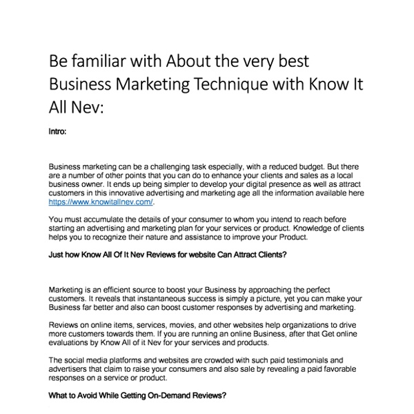 Be familiar with About the very best Business Marketing Technique with Know It All Nev.pdf