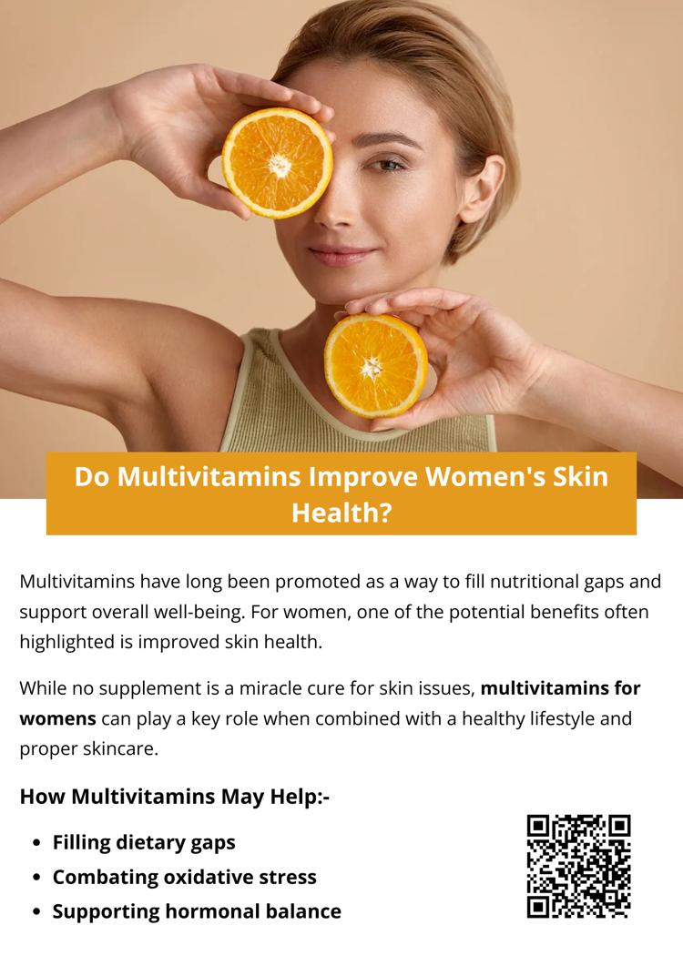 Multivitamins for women can improve women’s skin health by supplying essential nutrients that support skin repair, hydration, and protection. Though they’re not a cure-all, they are a helpful addition to a holistic approach to skincare that includes nutrition, sleep, and sun protection.
