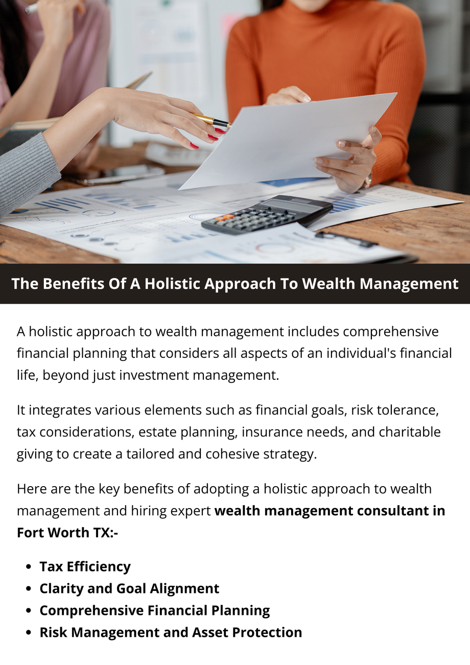A holistic approach to wealth management offers comprehensive financial planning, integrating investment management, tax planning, estate planning, risk management, and goal alignment. By considering all aspects of an individual's financial life, it ensures a tailored strategy that maximizes wealth, minimizes risks, and achieves long-term financial goals, providing clarity, security, and peace of mind. To know more visit here https://www.alignedwealthadv.com/