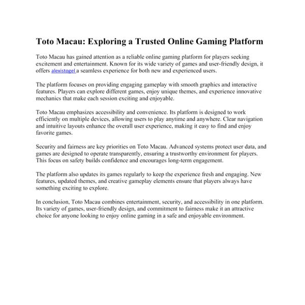 Toto Macau Exploring a Trusted Online Gaming Platform.docx