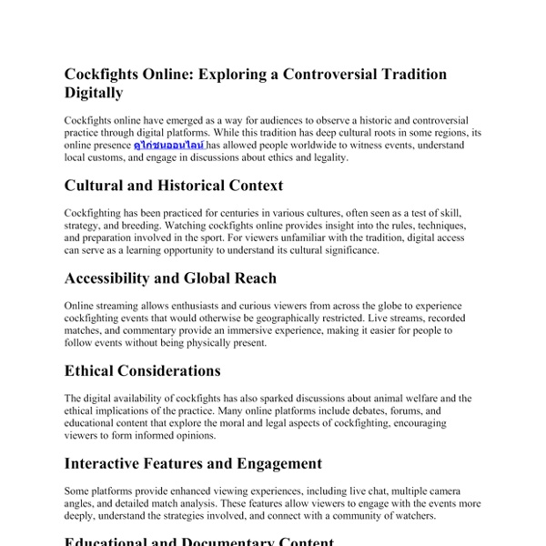 Cockfights Online Exploring a Controversial Tradition Digitally