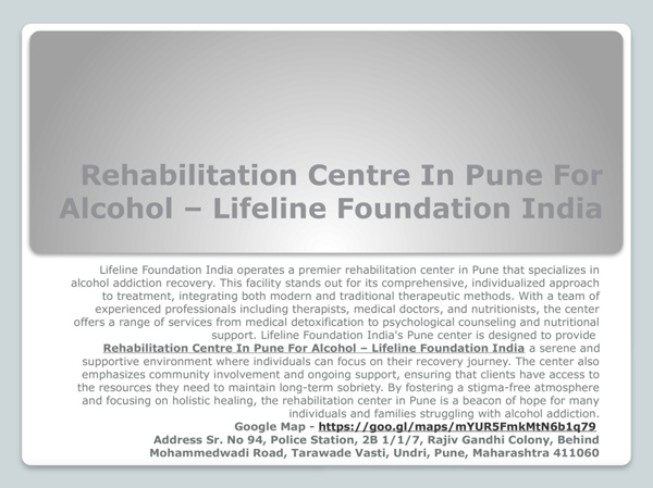 Rehabilitation Centre In Pune For Alcohol Lifeline Foundation India.pptx
