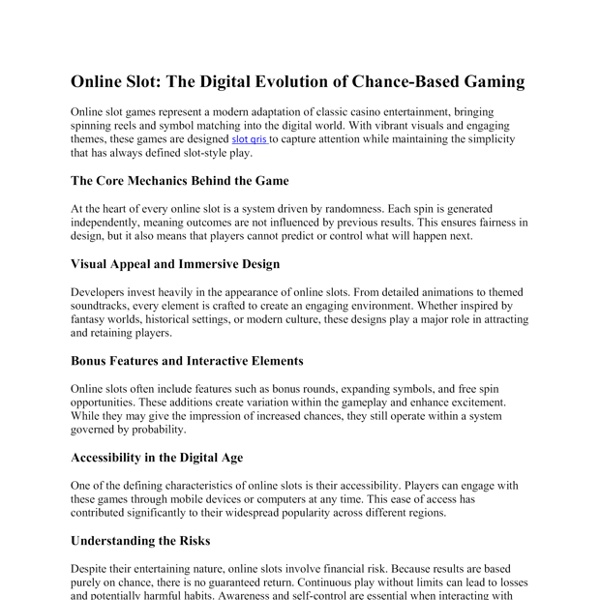 Online Slot The Digital Evolution of Chance-Based Gaming