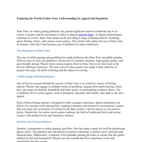 Exploring the World of Situs Toto Understanding Its Appeal and Popularity.docx