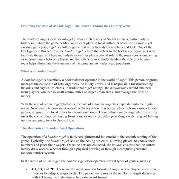 Exploring the Role of Bandar Togel The Heart of Indonesias Lottery Scene.docx