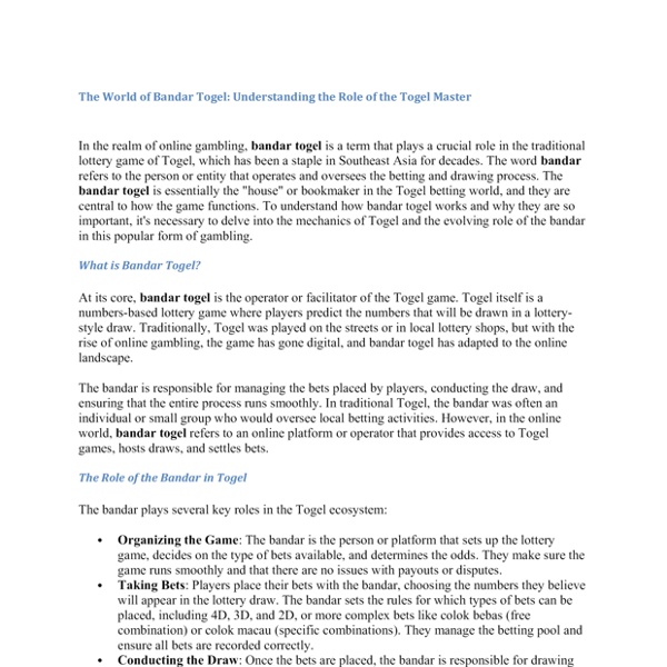 The World of Bandar Togel Understanding the Role of the Togel Master.docx