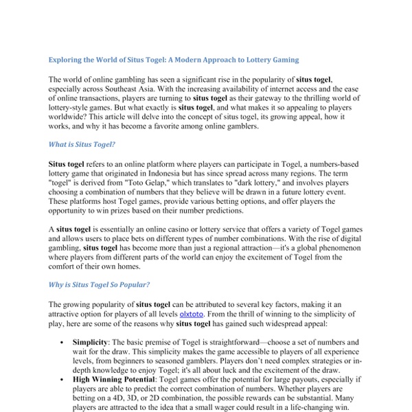 Exploring the World of Situs Togel A Modern Approach to Lottery Gaming.docx