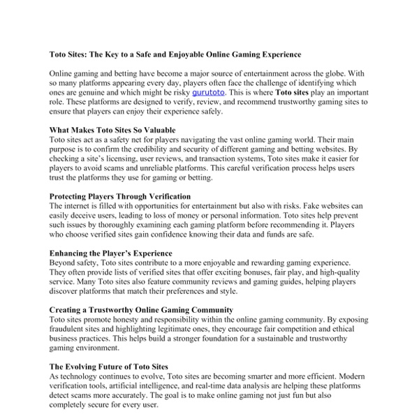 Toto Sites The Key to a Safe and Enjoyable Online Gaming Experience.docx