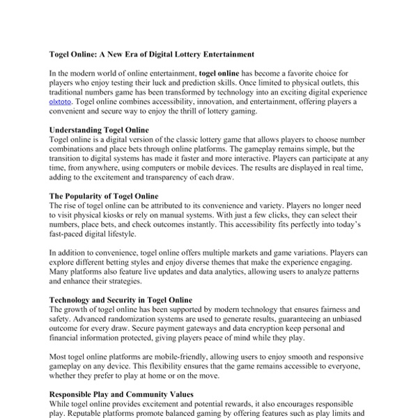 Togel Online A New Era of Digital Lottery Entertainment.docx
