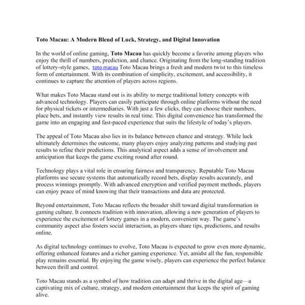 Toto Macau A Modern Blend of Luck Strategy and Digital Innovation.docx