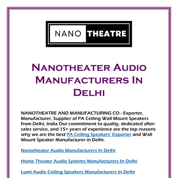 Nanotheater Audio Manufacturers In Delhi.pdf