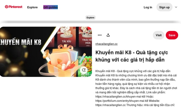 Khuyến mãi K8 là những chương trình ưu đãi đặc biệt mà nhà cái K8 dành cho thành viên của mình, bao gồm thưởng nạp lần đầu, hoàn tiền hàng ngày, quà tặng sự kiện và nhiều cơ hội nhận thưởng giá trị khác. Đây là cách nhà cái tặng tiền tri ân người chơi và mang đến trải nghiệm đẳng cấp nhất.