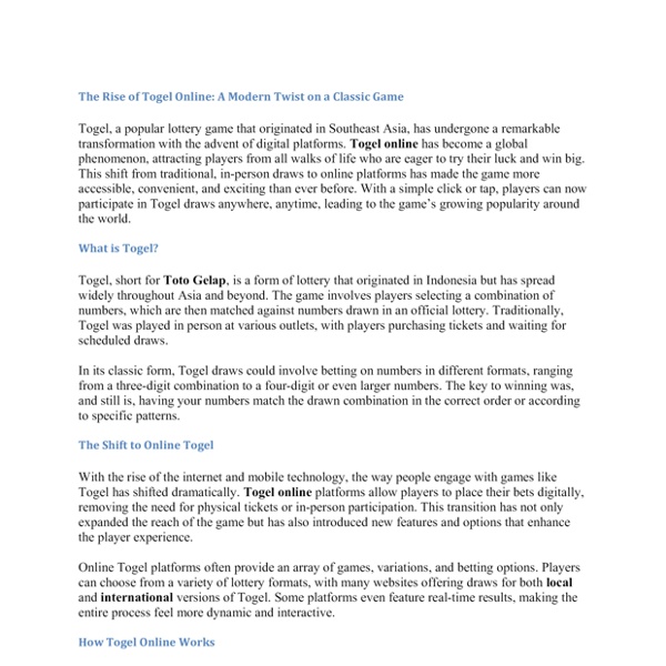 The Rise of Togel Online A Modern Twist on a Classic Game.docx