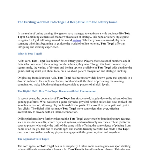 The Exciting World of Toto Togel A Deep Dive Into the Lottery Game.docx