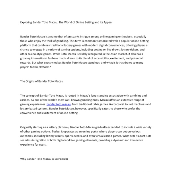 Exploring Bandar Toto Macau The World of Online Betting and Its Appeal.docx