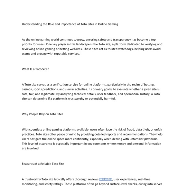 Understanding the Role and Importance of Toto Sites in Online Gaming.docx