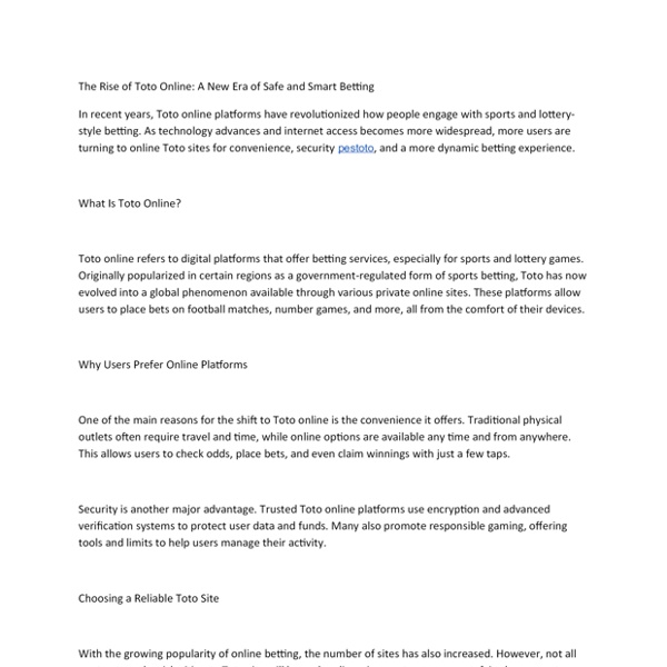 The Rise of Toto Online A New Era of Safe and Smart Betting.docx