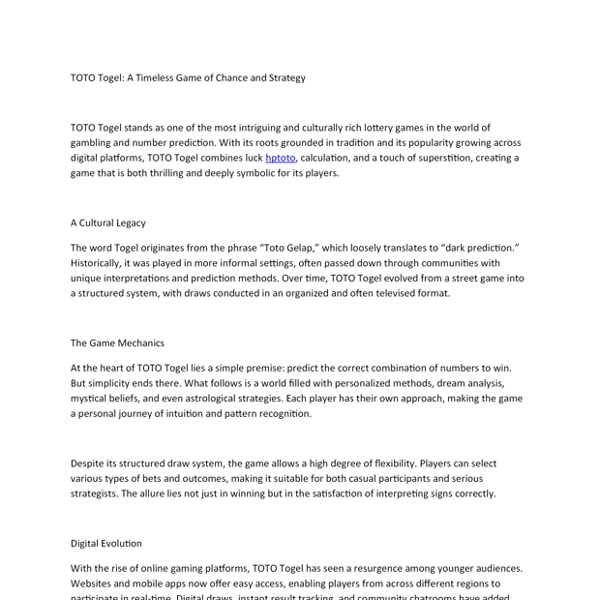 TOTO Togel A Timeless Game of Chance and Strategy.docx