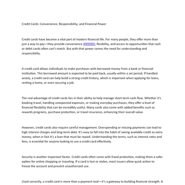 Credit Cards Convenience Responsibility and Financial Power.docx