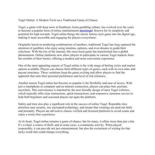 Togel Online A Modern Twist on a Traditional Game of Chance.docx