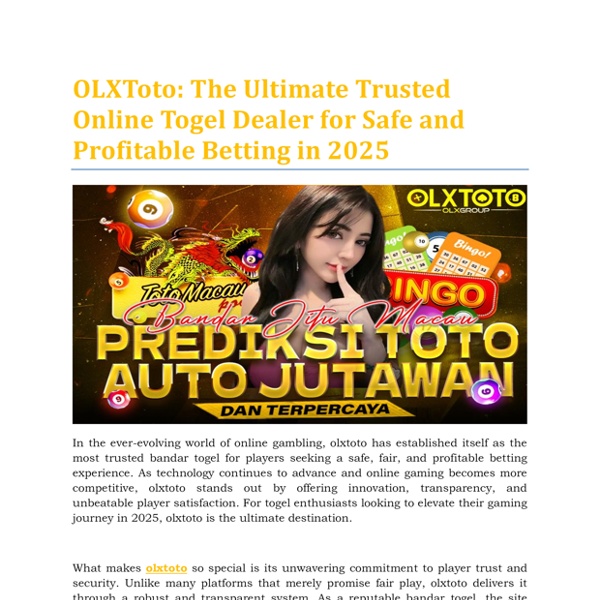 OLXTOTO Official Togel Bookie Site with the Biggest Discounts and Attractive New Member Bonuses.pdf