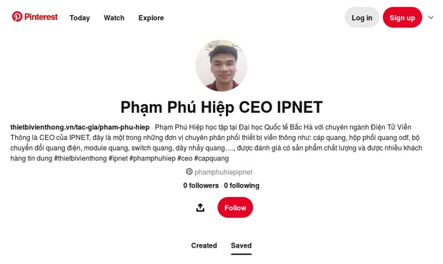 Phạm Phú Hiệp học tập tại Đại học Quốc tế Bắc Hà với chuyên ngành Điện Tử Viễn Thông là CEO của IPNET, đây là một trong những đơn vị chuyên phân phối thiết bị viễn thông như: cáp quang, hộp phối quang odf, bộ chuyển đổi quang điện, module quang, switch quang, dây nhảy quang…., được đánh giá có sản phẩm chất lượng và được nhiều khách hàng tin dung