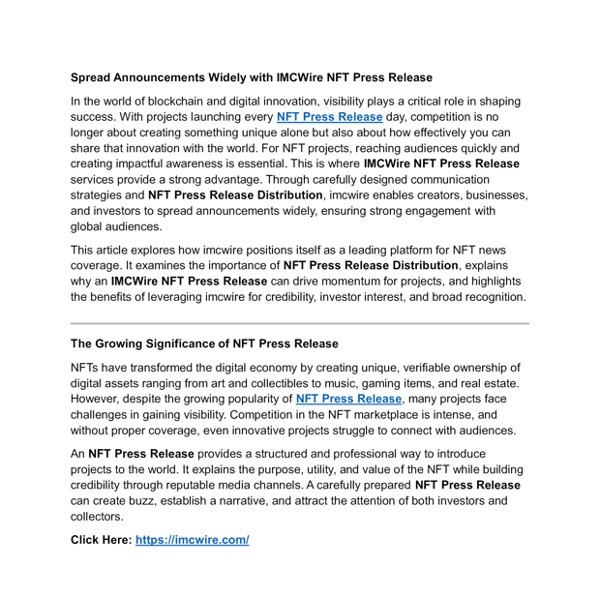 IMCWire NFT Press Release Connects Projects to Media.pdf