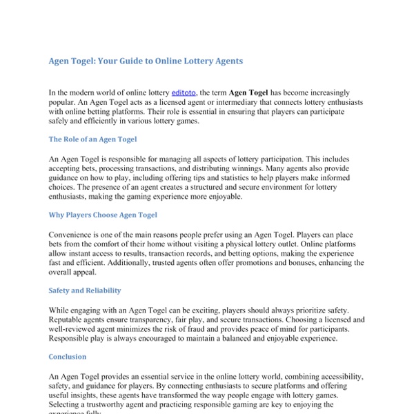 Agen Togel Your Guide to Online Lottery Agents.docx