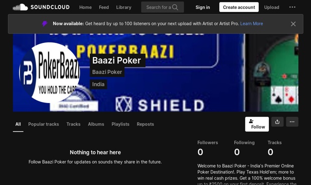 Welcome to Baazi Poker - India's Premier Online Poker Destination!. Play Texas Hold'em; more to win real cash prizes. Get a 100% welcome bonus up to ₹2500 on your first deposit. Experience the thrill of online poker like never before. Whether you’re a beginner or a seasoned pro, our platform offers a variety of games tailored just for you. Dive in, compete with players worldwide, and discover the excitement that awaits at every table. Join us and let’s make your poker journey unforgettable.