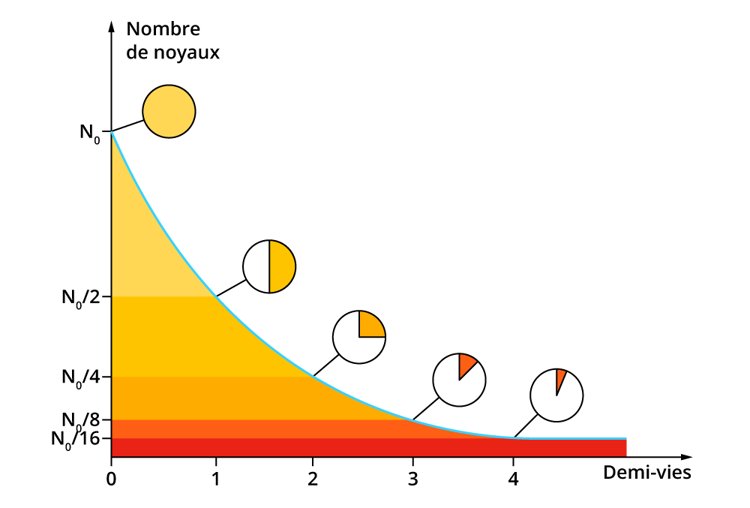 La courbe de décroissance radioactive donne l'évolution du nombre de noyaux radioactifs dans un échantillon en fonction du temps. Elle est propre à chaque noyau radioactif.