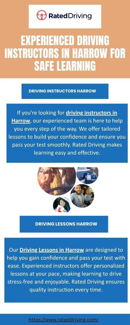 Our driving instructors in Harrow are skilled and patient, offering tailored lessons to meet your needs. Whether you're a beginner or looking to refine your skills, we ensure a positive learning experience. Rated Driving provides professional and reliable instruction.