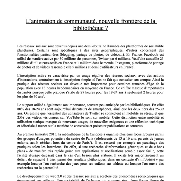 Novembre 2015 Lanimation de communaute nouvelle frontiere de la bibliotheque Biennale du numerique ENSSIB 2015.doc